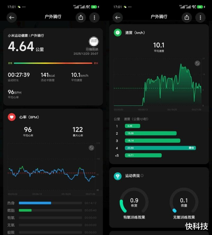 小米手表5作为小米新一代的全能旗舰手表,运动监测功能同样强大,下班骑车回家路上顺便用小米手表5记录了一下运动情况,可以看到小米手表5的监测精度和监测的数据信息量都不输专业的运动手表。