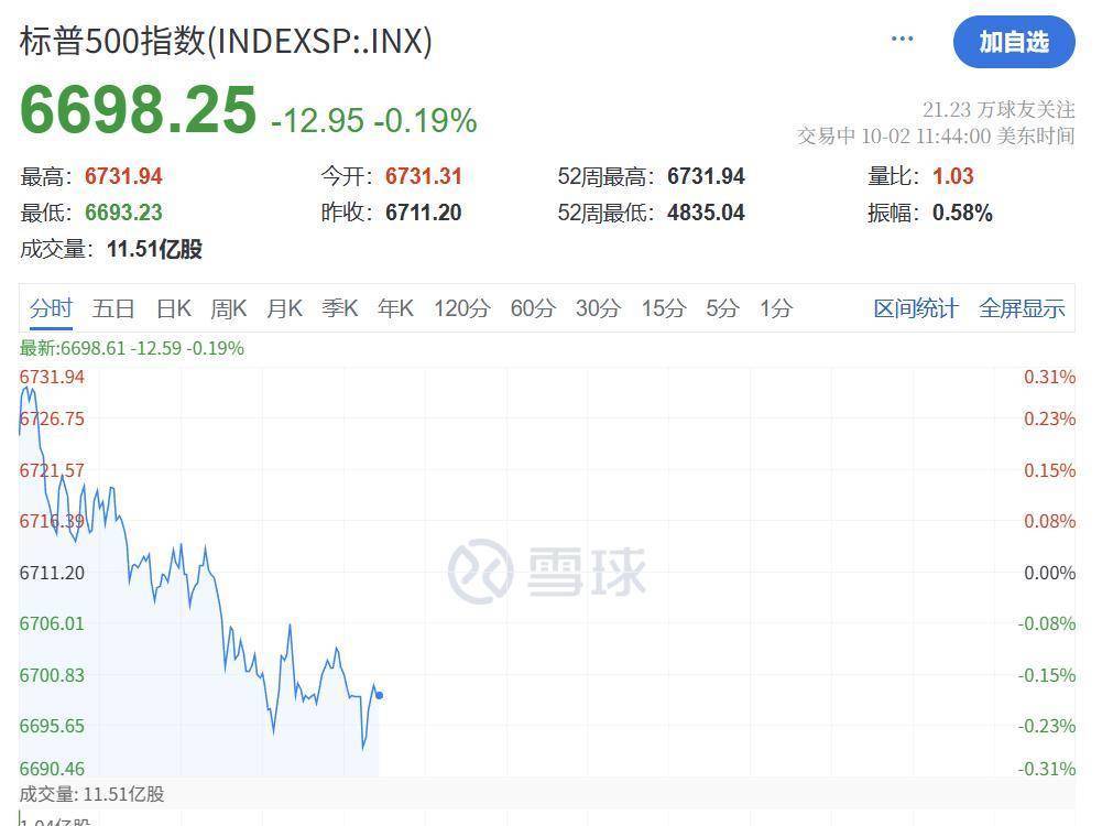 美股方面,走势跟黄金价格相似,开盘一度续创历史新高,随后高开低走,标普500指数创纪录高开后转跌。
