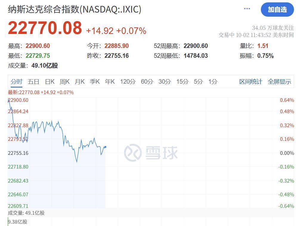 受OpenAI完成员工股权转让、估值跃升至5000亿美元、成为全球最具价值初创公司提振,纳斯达克100指数一度连创历史新高俊升配资,但涨势难以为继,AI乐观情绪有所降温。